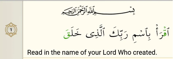 The verse addresses the Prophet pbuh and says, “Read (Proclaim)! In the Name of your Lord Who created”, which means Read in the name of the Lord, Who is the Creator, Who created the whole universe and everything in it.
