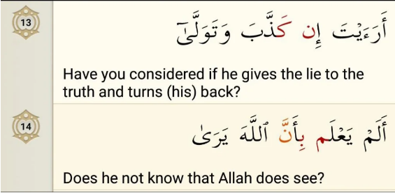 This is extension of the previous verses about evil traits of Abu Jahl. This cursed man had potential to accept the Truth as he could see clear signs already but had he only realised that potential. Instead he turned bad and now Allah asks can’t you see the harm and destruction that he will bring about as a result?