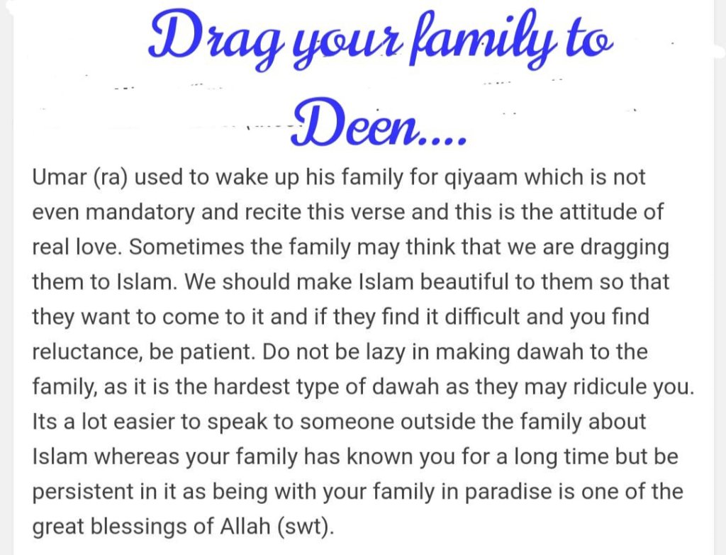 Our love for our family on that day will be associated with those who believed with us in this world. The shahada itself can be considered to make us part of a bigger and more significant family just as the bond between believers in this world. Real happiness is when the family comes together through obedience to Allah. This means the family and relatives and companions who will have been pardoned even like himself. Imagine in this dunia when we gain any victory, out first urge and desire is to go and tell the good news to our beloved ones like family and close friends. Then the success of Akhirah is far greater, book of deeds in right hand means will be worth mentioning to the beloved ones!