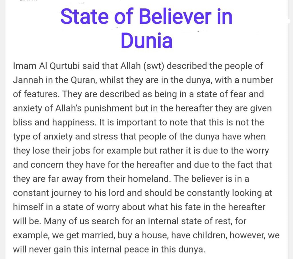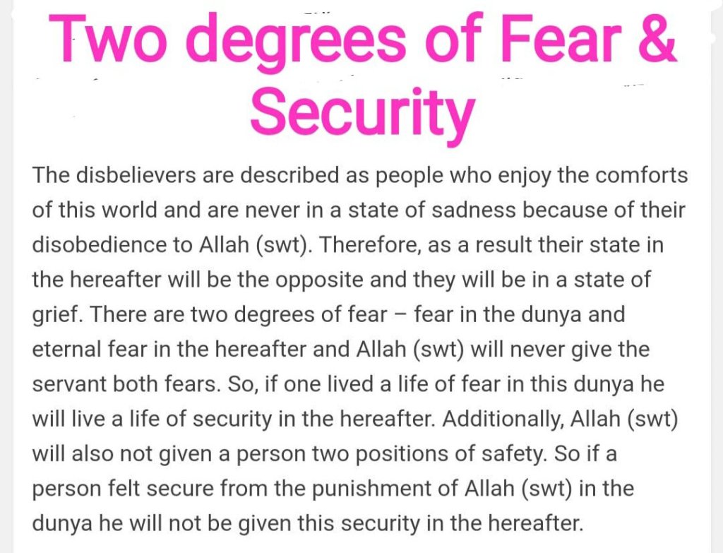 The happiness of the disbeliever through his enjoyment of the luxuries of this dunia, such as being carefree to the responsibilities of worship such as prayer and fasting led to his destruction in the Hereafter. Often this is what prevents people from practicing Islam as all they see is struggle when all they want to do is enjoy themselves. However, this is not true happiness. True happiness is achieved through nourishing one’s soul. The happiness of the soul is eternal and the happiness of satisfying one’s desire is temporal and causes pain afterwards.