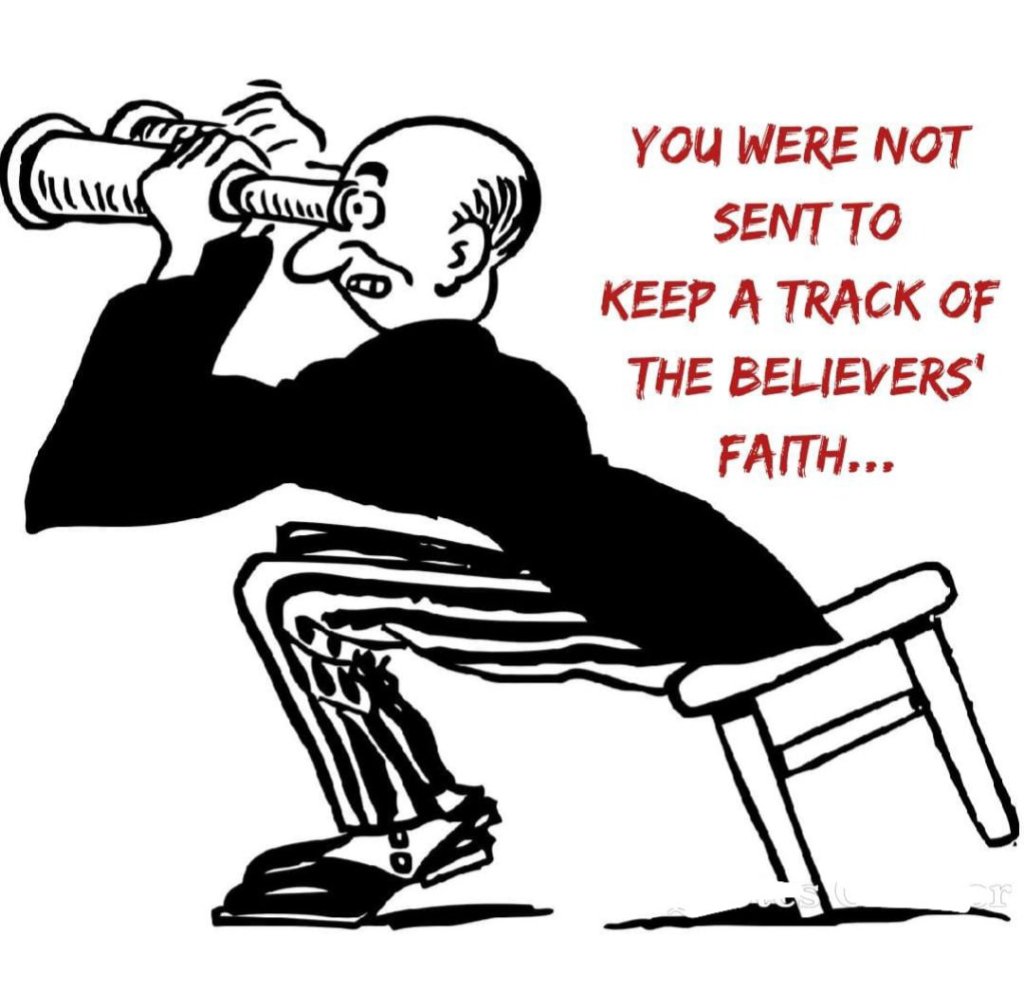 Then Allah says with what right and according to what rationale do they find fault with the believers? They had not been sent as guardians over the believers so why should they be so concerned with whether Muslims are lost or not, with how they live or what they aspire to. What makes them think they have this authority? This authority is only of Allah Alone to be a guardian over deeds!