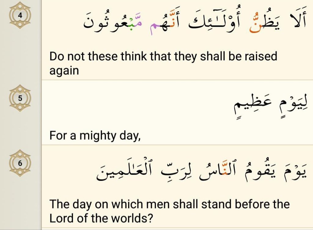 Now Allah says that the Mutaffif who is very trained at cheating others, doesn’t he know that there will be a day for which he has to appear before the Lord and there he can not cheat, escape or trick for his benefit.
