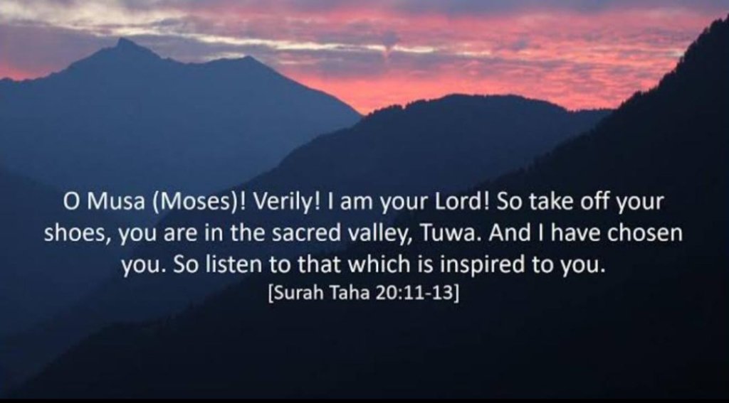 ‘Tuwa’ may be the name of a sacred valley just below Mount Sinai, which was located in Sham (Damascus) between Madyan and Egypt, and where Moosa a.s subsequently received the first light of inspiration from Allah.