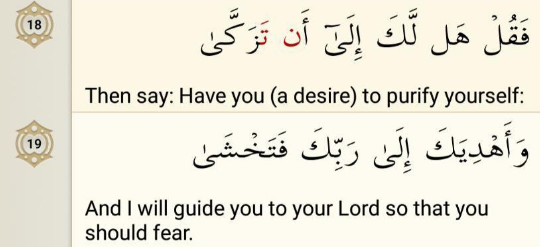 Allah directed Moosa a.s to a mission, and to go to Firoun and call him towards True Faith. Allah is commanding Moosa a.s to say to Firoun that would he like to reform himself? i.e. does he has any inclination inside him at all that makes him cleanse himself of the filth that he is infested with? A voice of reason inside him that wants to make him a better person?