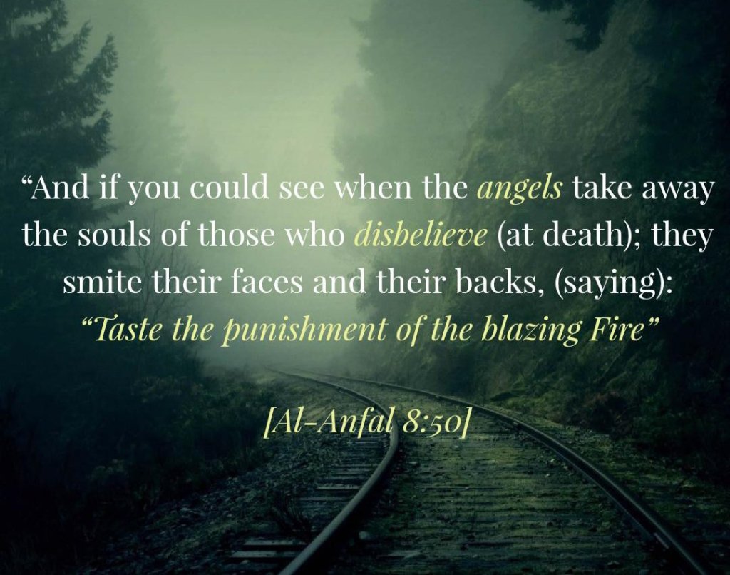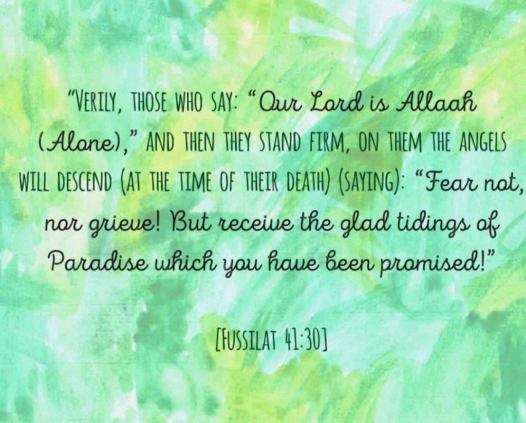 The angels of mercy take their souls and lift them up to heaven with great care, coming with glad tidings, calling them by the most loved of their names, so they feel joy, blessing and happiness which makes them steadfast.