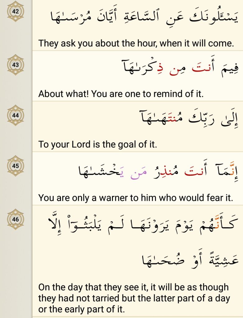 6. At the end of the Surah, it emphasizes on the fact that no one knows the date of that Day, however, it is certain that it is near.