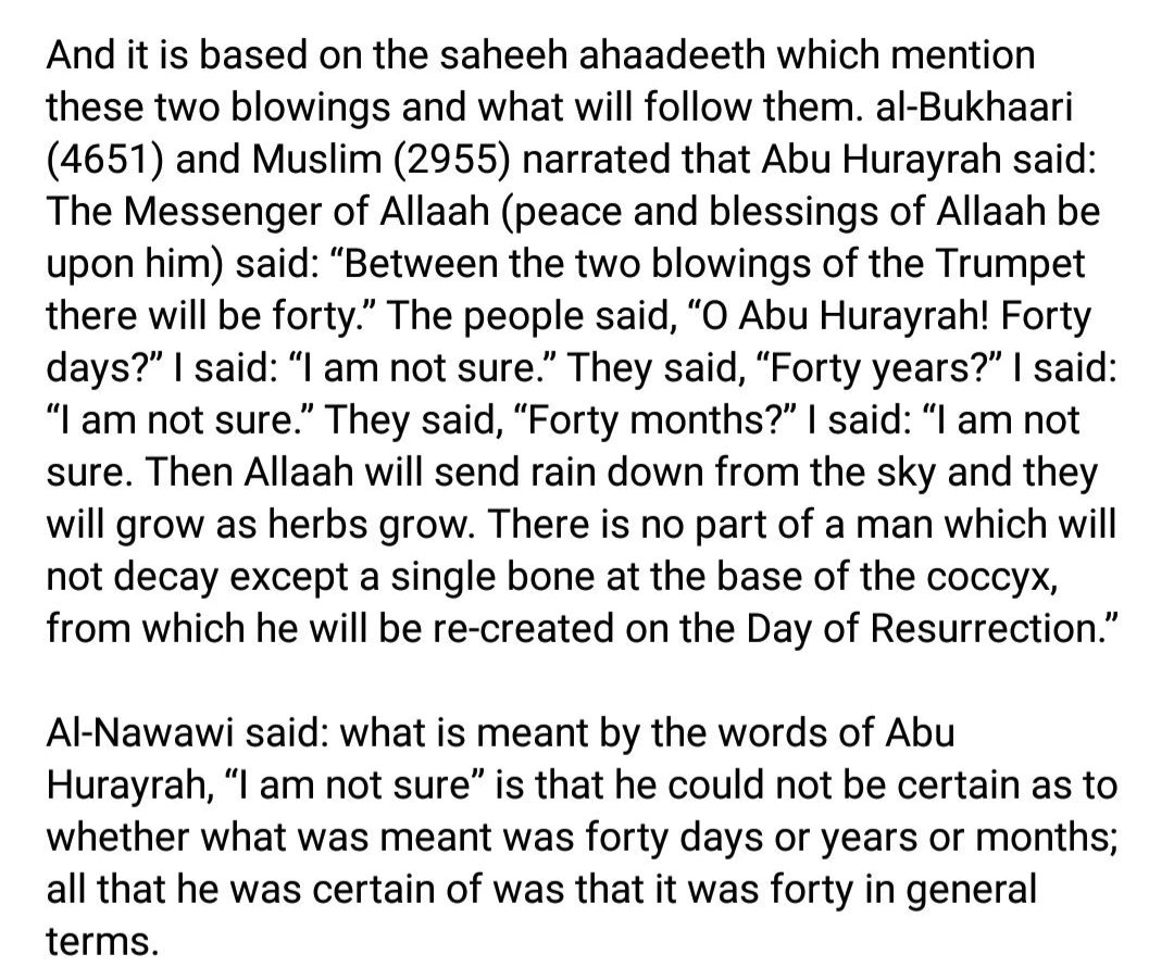 Thinking this return to be a return to loss, you may try to escape from it however hard you may, but it will inevitably take place; it cannot be averted by your denial, escape or mockery. It only depends on His command and when the second blow of the Trumpet occurs all rotten bones, which are scattered in the earth, will be gathered, revived and raised from their graves.