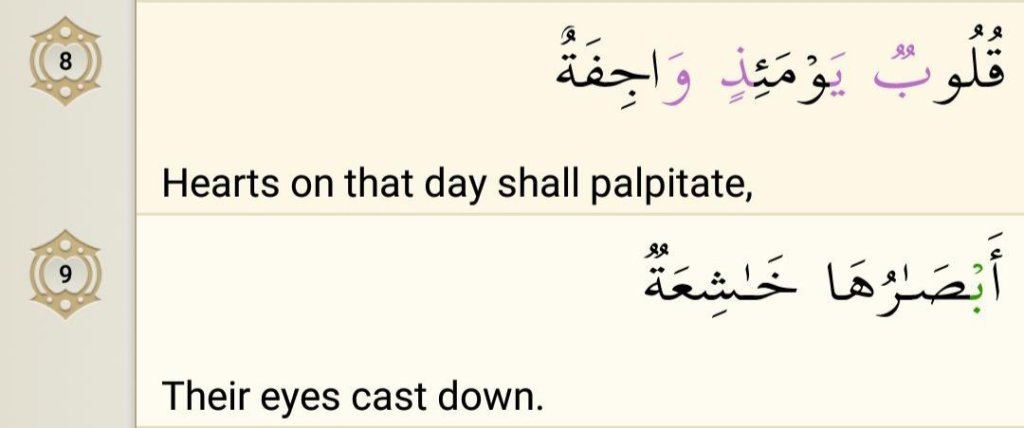Then Allah says Hearts that Day will be in agitation, they shall palpitate…
