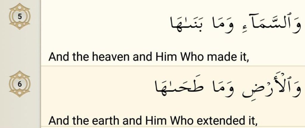 There are some considerable oaths pointed out at the beginning of this Surah, which are seven in number. This is the largest number of oaths taken throughout the Quran and this shows that in these verses the solemn appeal is made to something very splendid. The matter is as important as the solemnity of the heavens, Earth, sun, and moon; that which is effective in the fate of Man.