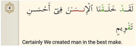 The term taqwim means to form something into an appropriate shape in a moderate regulation. It means that Allah has created man proportionately in all respects; both from the bodily point of view and from the spiritual and rational point of view because He has settled all faculties in him and prepared him appropriately to cover a great path towards development.